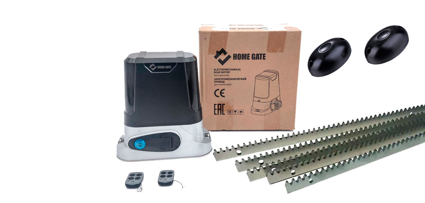 Комплект для откатных ворот HOME GATE LTM 800 + рейка 5 шт + фотоэлементы
