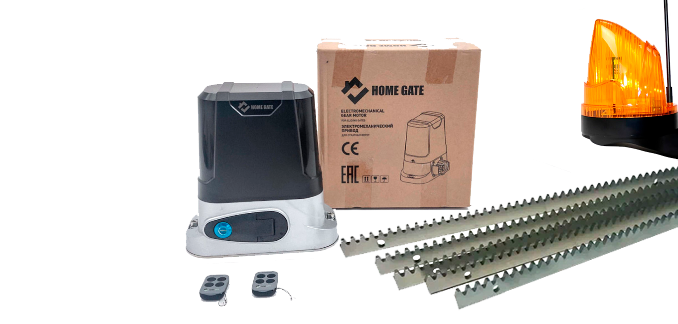 Электропривод для откатных ворот HOME GATE LTM 800 + рейка 5 шт + фотоэлементы + лампа